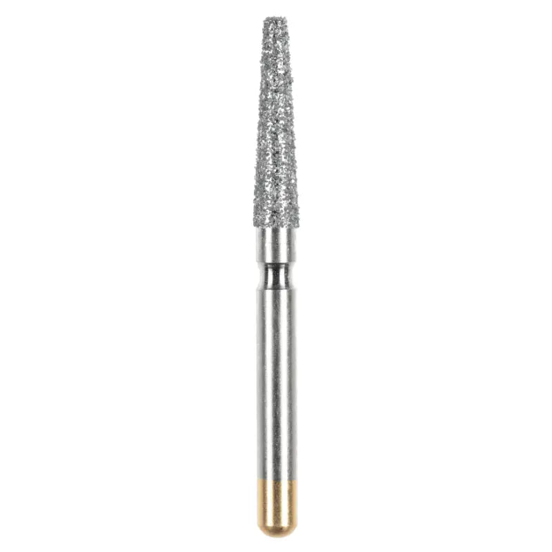 Fresa diamantata conica a punta piatta con grana grossa, indicata per una rapida rimozione di materiale durante la preparazione protesica. Ideale per la riduzione iniziale di tessuti duri come smalto e dentina, garantisce efficienza nel tempo e taglio deciso.