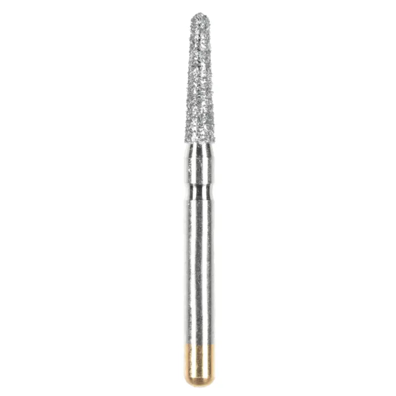 Descrizione: Fresa diamantata con forma conica a testa tonda allungata, progettata per interventi che richiedono una rimozione efficace di tessuto dentale o materiale protesico. La grana grossa consente un taglio rapido e deciso, particolarmente utile nelle fasi iniziali della preparazione. Indicata per riduzioni consistenti dove è necessario lavorare in profondità pur mantenendo un buon controllo.