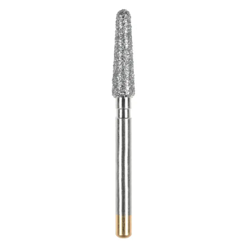 Fresa diamantata con forma conica a testa tonda allungata, progettata per interventi che richiedono una rimozione efficace di tessuto dentale o materiale protesico.